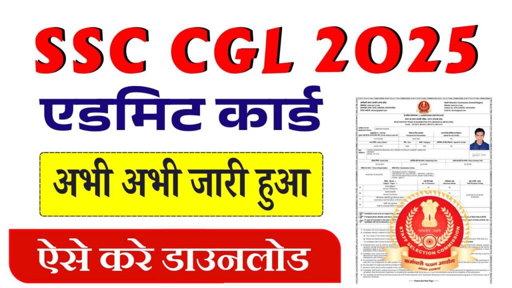 SSC CGL 2025 Admit Card : दोस्तों वैसे अभियार्थी जिन्होंने कर्मचारी चयन आयोग द्वारा आयोजित स्नातक स्तरीय एग्जाम SSC CGL 2025 का ऑनलाइन आवेदन किया है , तो यह लेख आपके लिए महत्वपूर्ण हो जाता है। कर्मचारी चयन आयोग के द्वारा इसी माह में 3 सितम्बर 2025 को परीक्षा की तिथि की घोषणा कर दिया गया था, जिसमे उन्होंने बताया था की परीक्षा की तिथि 12 सितम्बर 2025 से 26 सितम्बर के बिच आयोजित की जाएगी। और इस परीक्षा (SSC CGL 2025) का एडमिट कार्ड जरी कर दिया।
